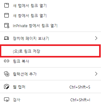 각자 컴퓨터 환경마다 다르게 나올 수 있는데, (으)로 링크 저장 또는 링크 주소 복사가 나올 것이다