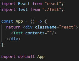 아까 생성한 Test 컴포넌트에서 contents라는 props를 렌더링하는 과정을 살펴보자