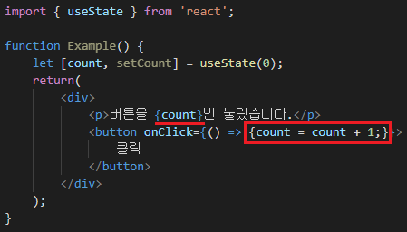 useState를 사용하기 위해서는 React 패키지로부터 useState를 import 해야한다