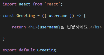 App.js에서 <Greeting /> 호출 시 넘겨준 username property를 props로 전달받아 사용