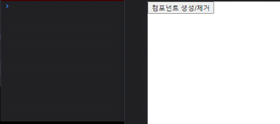 버튼을 클릭하면 state의 값이 true가 되며 생성되었다는 log와 함께 안녕하세요가 화면에 출력