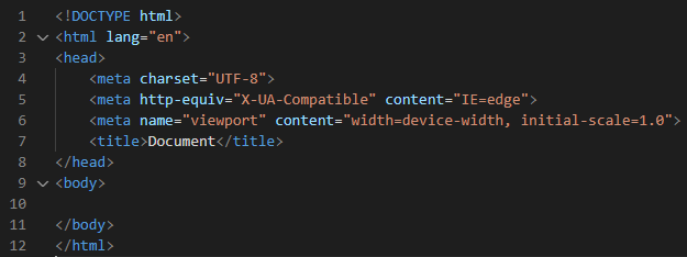.html 파일을 생성하고 " ! "를 입력 후 [Enter], 기본적인 HTML의 구조를 만들어주는 코드가 등장한다