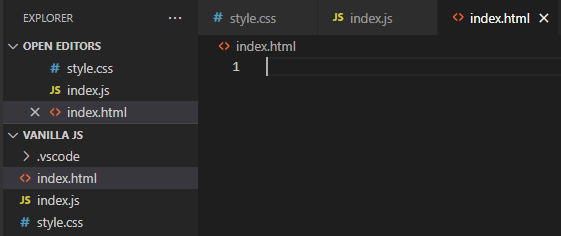 (이때, 이름은 자유롭게 설정하되 반드시 .html .css .js와 같은 형태로 파일을 만들어야 각 언어에 맞게 인식)