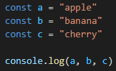 과일을 한 번에 표현하고자 세 개의 변수를 생성하여 출력하고 있다
