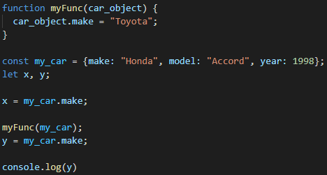 함수는 car_object.make의 값을 Honda → Toyota 변경하는 동작을 정의하고 있다