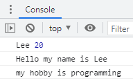 content 객체를 생성 후 hobby의 값으로 값이 아닌, 함수를 전달해주었다