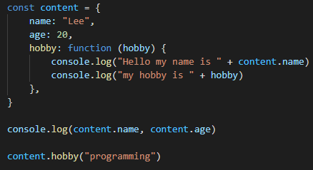 기존의 함수의 형태와는 다른, 객체 안에서 함수를 생성하고 호출할 수 있다