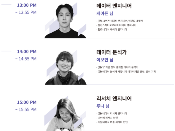 2차는 주로 데이터분석에 관련하여 동일하게 세 분의 강사님들과 함께 특강이 진행되었다