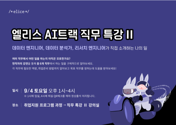 여기서도 참여하고 있는 Elice AI Track은 전액 국비지원과정으로 진행이 되고 있는데,