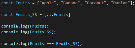 지금까지 살펴본 전개 구문이 아닌, 객체 데이터를 가진 Fruits 변수 자체를 Fruits_SS에 할당