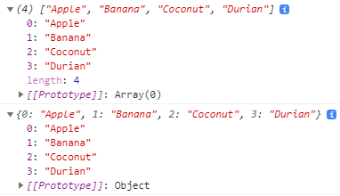 배열을 객체로 받을 시 배열의 각 요소는 Property, 배열의 index가 Property의 name이 된다