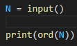 알파벳 소문자, 대문자, 숫자 0-9중 하나가 주어졌을 때, 주어진 글자의 아스키 코드값을 출력하는 프로그램을 작성하시오.