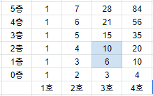주어지는 양의 정수 k와 n에 대해 k층에 n호에는 몇 명이 살고 있는지 출력하라.