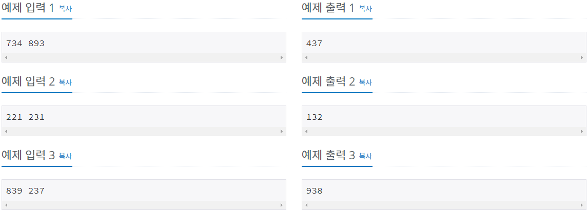 두 수가 주어졌을 때, 상수의 대답을 출력하는 프로그램을 작성하시오.
